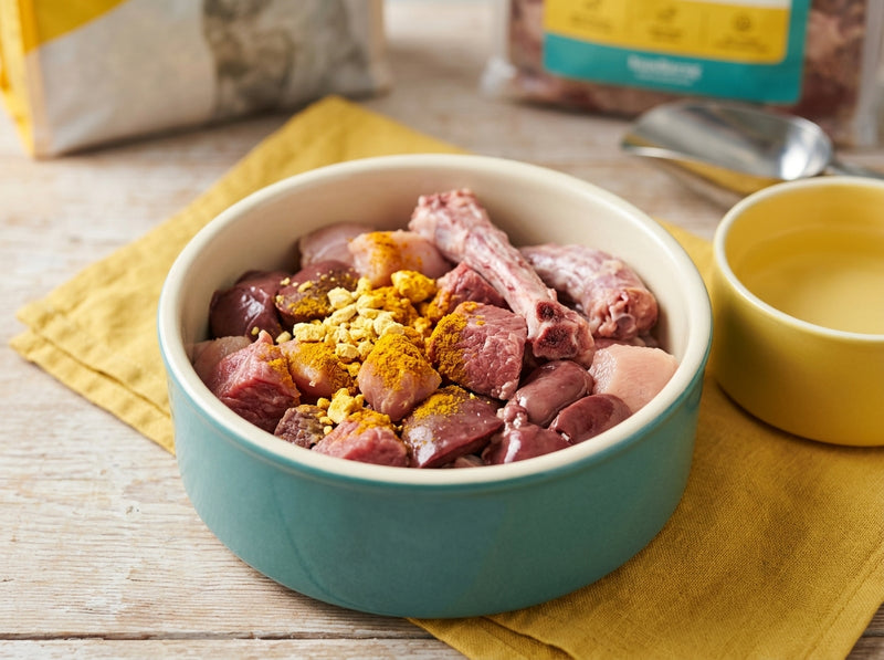 💡 Huomio allergikon omistajalle! Kun teet eliminaatiodiettiä, et voi käyttää aiemmissa ohjeissa mainittuja kanan kauloja tai naudanmaksakuutioita. Kaiken on oltava lammasta tai tultava puhtaana lisäravinteena purkista! Huomioi myös, että lammas on energiatiheää, joten annoskoko on hieman peruslihaa pienempi.