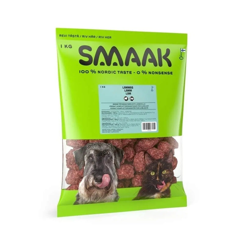 🥩 1. Pohjaliha (n. 2,5 kg / vko): Esimerkiksi SMAAK Lammaspullat. Huom! Koska lammas on erittäin energiatiheää (yli 300 kcal / 100g), 25 kg normaaliaktiiviselle koiralle riittää tästä usein noin 350–400 grammaa päivässä. Seuraa koiran painoa!